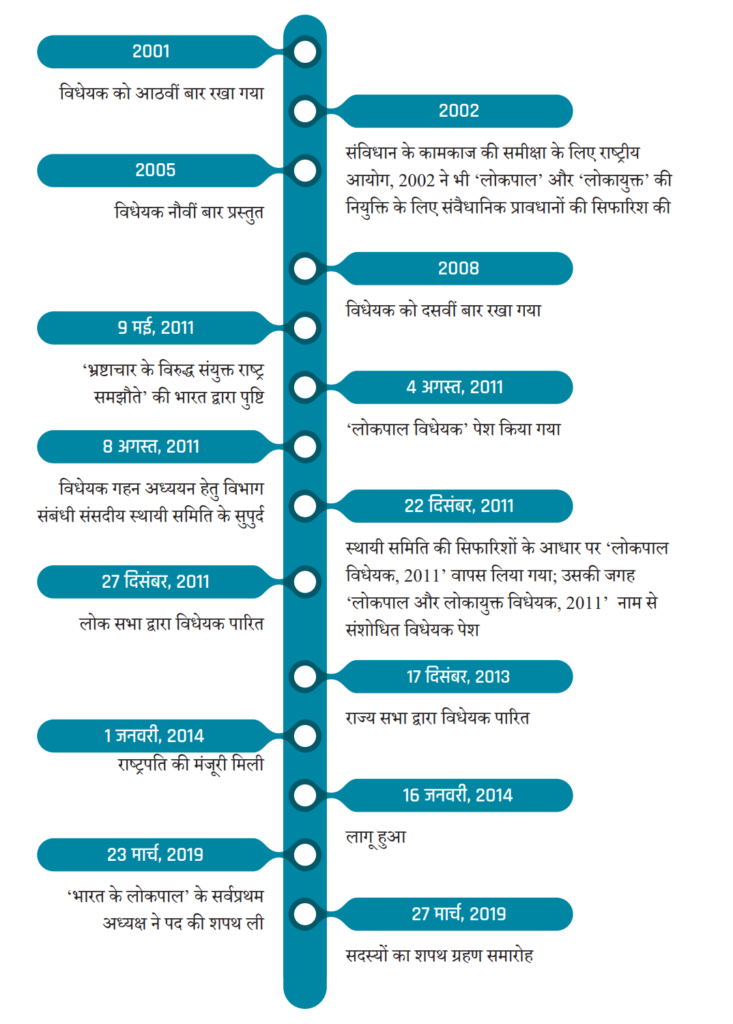 2013 का अधिनियम पास होने के 5 साल बाद (2019) लोकपाल नियुक्त हुआ – राजनीतिक इच्छाशक्ति की कमी।