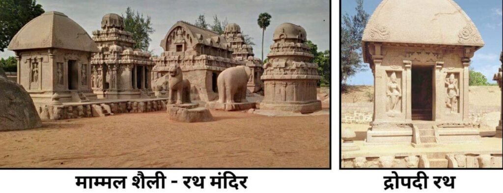 - प्रारंभिक चरण में मंदिर सपाट छत वाले, एकाश्म (single rock-cut) होते थे।
