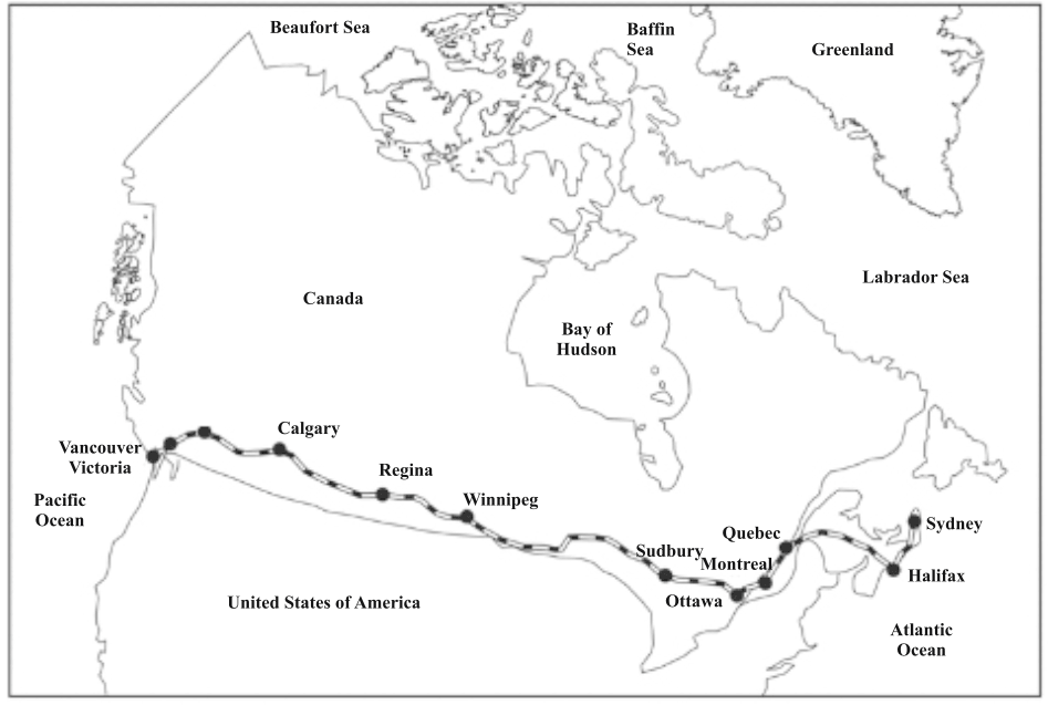 अटलांटिक तट → क्यूबेक → मॉन्ट्रियल → प्रशांत तट |