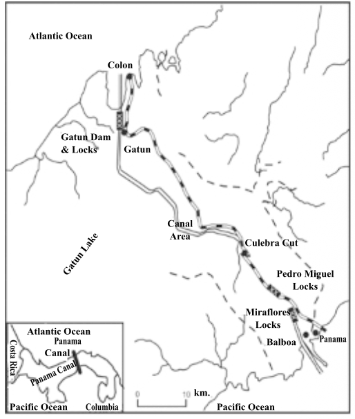 अटलांटिक महासागर ↔ प्रशांत महासागर |