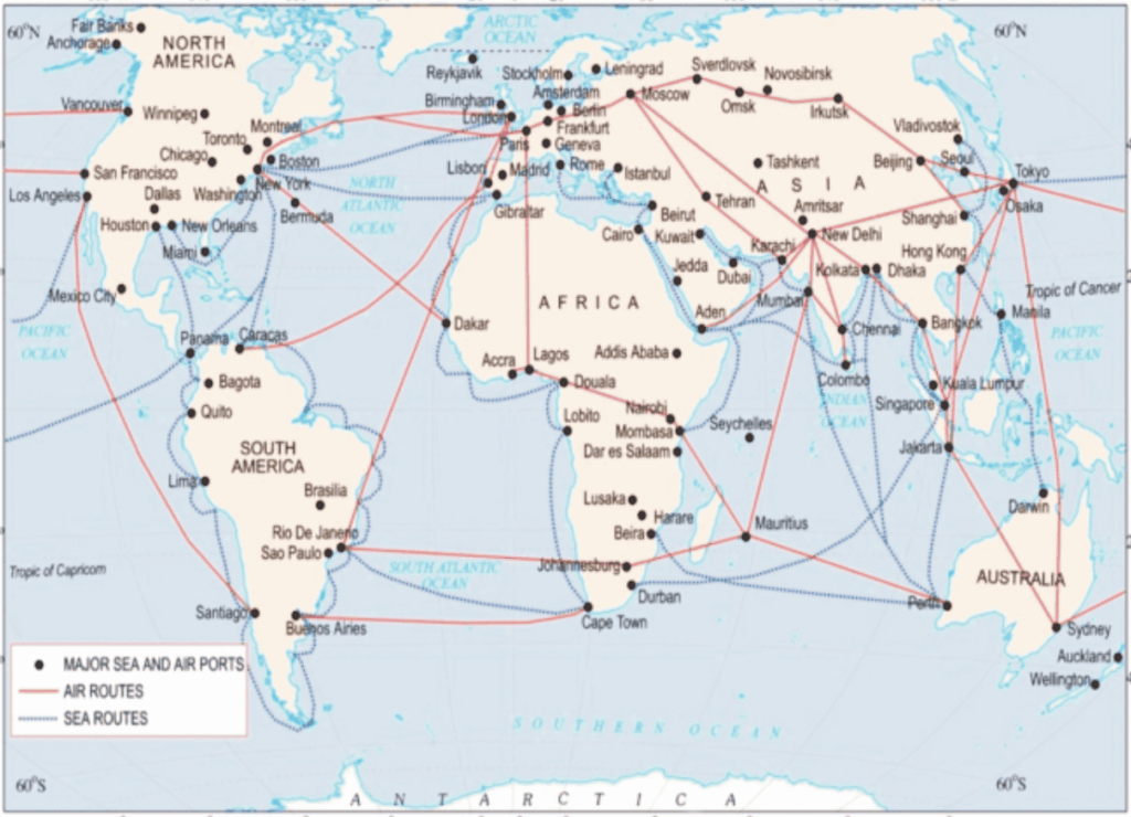 दुनिया के प्रमुख समुद्री और हवाई मार्ग
