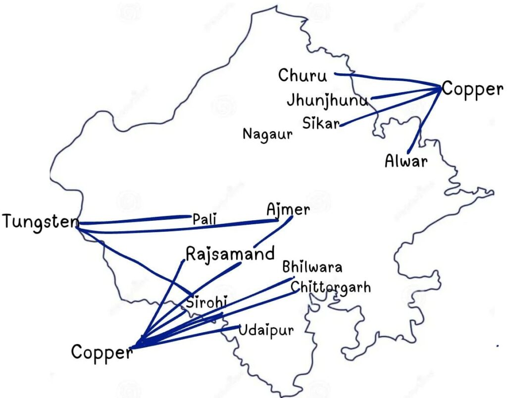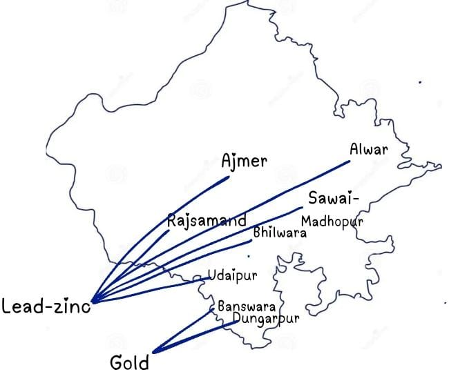 • जस्ता – भीलवाड़ा में सबसे अधिक उत्पादन।