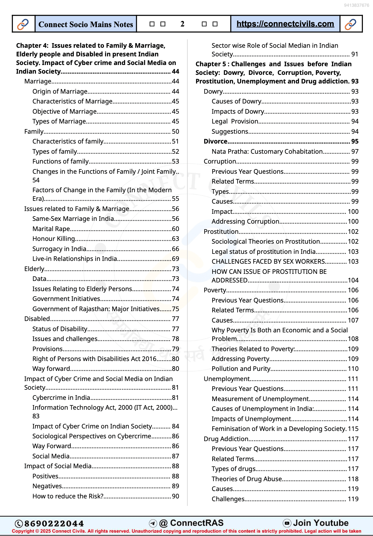 - Chapter 4: Issues Related to Family & Marriage, Elderly People and Disabled in Present Indian Society; Impact of Cyber Crime and Social Media on Indian Society