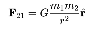 - r̂ = r/r is the unit vector along the line joining the two masses.