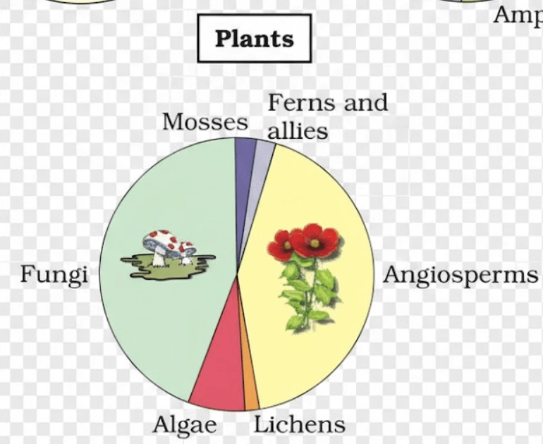 Plants (including algae, fungi, bryophytes, gymnosperms, angiosperms) form only about 22% of total species.
