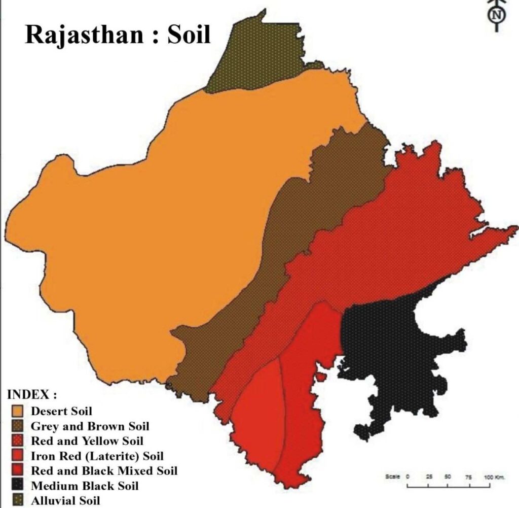 Soils of Rajasthan constitute a vital theme in Rajasthan Geography, reflecting the combined influence of climate, relief, parent rock, and human activities across the state. Rajasthan exhibits wide soil diversity, ranging from arid desert soils of western districts to fertile alluvial soils of the north and east, along with red, black, and mixed soils in the plateau regions. These soils are classified on the basis of colour, composition, fertility, and scientific criteria, forming the foundation for agricultural patterns and land-use planning in the state.