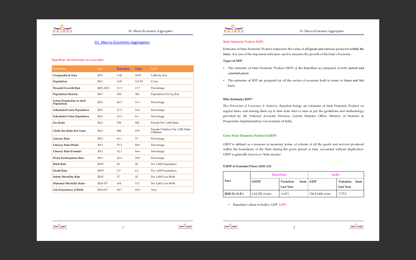 In last RAS 2018 Pre Examination, 6 Questions came directly from Rajasthan Economic Review. As the focus of examination shifts more to current affairs related questions in subject matters like economy, the relevance of Rajasthan Economic Review will increase. Also, the Economic Review is the only authentic source of government schemes & recent initiatives taken. The data from economic review can add relevance to the answers one writes in RAS Mains.