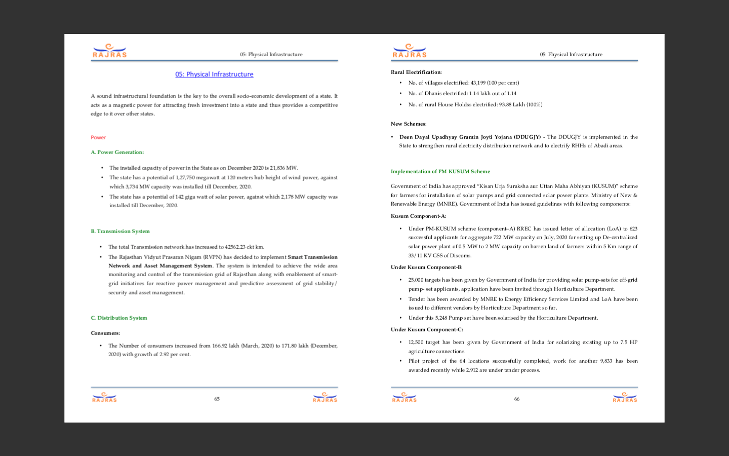 The Economic Review 2020-21, presents the recent trends and prospects of State’s economy. Rajasthan Economic Review 2020-21 comprises of 11 chapters that provide a comprehensive view of the current socio-economic status of Rajasthan, covering all the sectors.